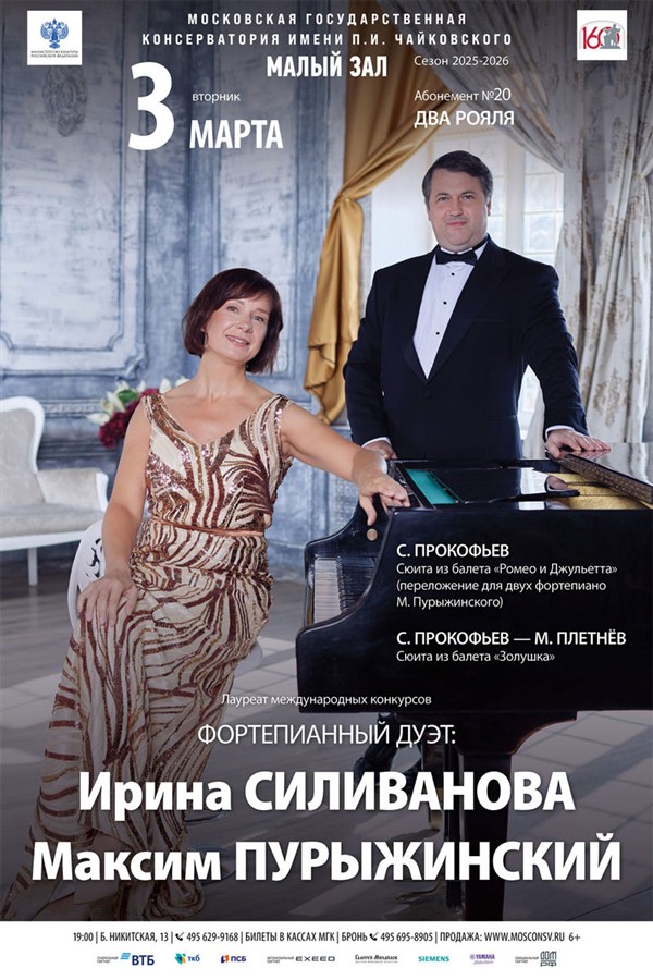 | НОВОСТИДо новых встреч на наших концертах!ВНИМАНИЕ!Рады анонсировать выход в свет Хрестоматии для фортепианного дуэта! Приобрести ее можно на наших концертах.| 2025 - 2026>> Ставрополь – 16-17.09.2025 Максим - член жюри конкурса "Студенческая весна" >> Москва – 18.09.2025 Рахманиновский зал консерватории Диалог двух столиц Чайковский, Рахманинов, Шостакович анонс >> билеты >> >> Белгород – 26.09.2025 Белгородская филармония Бизе-Щедрин, Прокофьев >> Москва – 28.09.2025 Московский международный Дом музыки, Камерный зал Чайковский, Шуман Песочная анимация - Марина Чистина билеты >> >> Москва – 01.10.2025 Зеркальный зал, Козицкий пер., 5 Шуман, Брамс, Чайковский >> Москва – 02.10.2025 Зеркальный зал, Козицкий пер., 5 Шуман, Брамс, Чайковский >> Москва – 05.10.2025 Московская филармония представляет: Абонемент № 262. Дневник веселых историй Начало в 12.00 билеты >> >> Москва – 12.10.2025 Российская Академия музыки Связь поколений регистрация >> >> Москва – 19.10.2025 Архиповский салон 5-летие создания Школы Виктора Маевского >> Пенза – 22.10.2025 Ирина и Максим проводят мастер-классы в музыкальном колледже билеты >> >> Пенза – 22.10.2025 Пензенская филармония Бизе-Щедрин, Прокофьев >> Саранск – 23.10.2025 Ирина и Максим проводят мастер-классы в музыкальном колледже >> Саранск – 23.10.2025 Мордовская филармония Бизе-Щедрин, Прокофьев >> Ульяновск – 24.10.2025 Ирина и Максим проводят мастер-клаcc >> Ульяновск – 25.10.2025 Ульяновская филармония Григ, Брамс, Равель, Чайковский >> Улан-Удэ – 27-29.10.2025 Максим проводит мастер-клаcc >> Нижний Новгород – 31.10.2025 Ирина и Максим проводят мастер-класс >> Нижний Новгород – 31.10.2025 Бизе-Щедрин анонс >> >> Самара – 02-04.11.2025 Максим - председатель жюри конкурса фортепианных дуэтов им. Н.Петрова >> Москва – 09.11.2025 Максим - член жюри конкурса "Роза ветров" >> Москва – 10.11.2025 Концерт-посвящение юбилею А.З.Бондурянского Большой зал консерватории анонс >> билеты >> >> Саратов – 11.11.2025 Саратовская консерватория Максим проводит мастер-клаcc анонс >> >> Москва – 18.11.2025 РАМ им. Гнесиных, Большой зал Памяти Щедрина... анонс >> билеты >> >> Москва – 21.11.2025 Рахманиновский зал консерватории Большая музыка для маленьких Бизе-Щедрин, Чайковский >> Москва – 29.11.2025 Московский международный Дом музыки, Камерный зал Чайковский, Вагнер Песочная анимация - Марина Чистина билеты >> >> Архангельск – 06.12.2025 Архангельская филармония Бизе-Щедрин, Прокофьев >> Хабаровск – 12.12.2025 Ирина и Максим проводят мастер-класс в музыкальном колледже >> Хабаровск – 13.12.2025 Хабаровская филармония Моцарт, Сен-Санс анонс >> билеты >> >> Москва – 19.12.2025 Рахманиновский зал консерватории Большая музыка для маленьких >> Москва – 21.12.2025 Рахманиновский зал консерватории Новогодний концерт анонс >> билеты >> >> Москва – 02.01.2026 Московский международный Дом музыки, Камерный зал Щелкунчик Песочная анимация - Марина Чистина >> Москва – 14.02.2026 Московский международный Дом музыки, Камерный зал Чайковский, Дебюсси, Форе Песочная анимация - Марина Чистина билеты >> >> Москва – 03.03.2026 Малый зал консерватории Прокофьев анонс >> билеты >> >> Санкт-Петербург – 07.03.2026 Санкт-Петербургская филармония Бизе-Щедрин, Прокофьев >> Кызыл – 04.04.2026 Тувинская филармония Фестиваль фортепианных дуэтов Бизе-Щедрин >> Великий Новгород – 09.04.2026 Новгородская филармония Оркестровые транскрипции, сделанные Максимом Пурыжинским >> Кострома – 18.04.2026 Костромская филармония Бизе-Щедрин >> Липецк – 14.05.2026 Липецкая филармо