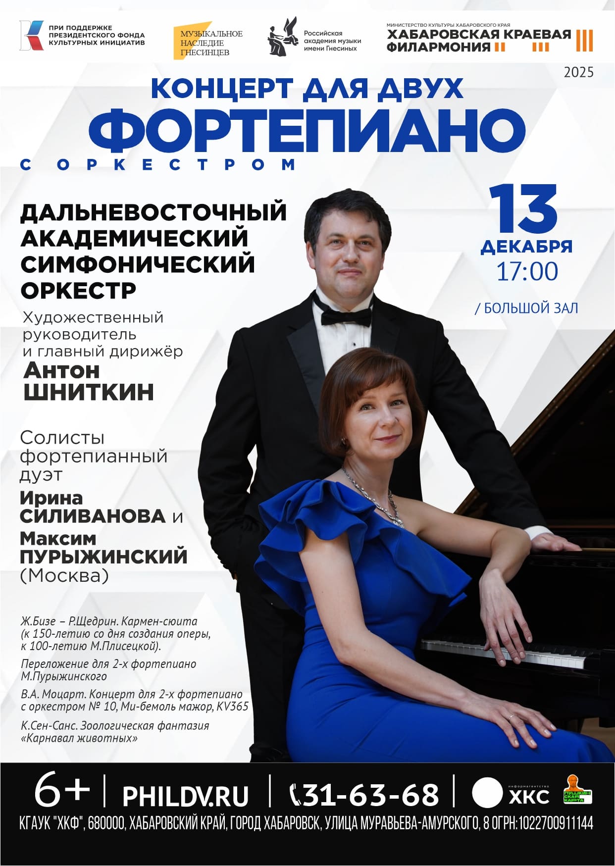 | НОВОСТИДо новых встреч на наших концертах!ВНИМАНИЕ!Рады анонсировать выход в свет Хрестоматии для фортепианного дуэта! Приобрести ее можно на наших концертах.| 2025 - 2026>> Ставрополь – 16-17.09.2025 Максим - член жюри конкурса "Студенческая весна" >> Москва – 18.09.2025 Рахманиновский зал консерватории Диалог двух столиц Чайковский, Рахманинов, Шостакович анонс >> билеты >> >> Белгород – 26.09.2025 Белгородская филармония Бизе-Щедрин, Прокофьев >> Москва – 28.09.2025 Московский международный Дом музыки, Камерный зал Чайковский, Шуман Песочная анимация - Марина Чистина билеты >> >> Москва – 01.10.2025 Зеркальный зал, Козицкий пер., 5 Шуман, Брамс, Чайковский >> Москва – 02.10.2025 Зеркальный зал, Козицкий пер., 5 Шуман, Брамс, Чайковский >> Москва – 05.10.2025 Московская филармония представляет: Абонемент № 262. Дневник веселых историй Начало в 12.00 билеты >> >> Москва – 12.10.2025 Российская Академия музыки Связь поколений регистрация >> >> Москва – 19.10.2025 Архиповский салон 5-летие создания Школы Виктора Маевского >> Пенза – 22.10.2025 Ирина и Максим проводят мастер-классы в музыкальном колледже билеты >> >> Пенза – 22.10.2025 Пензенская филармония Бизе-Щедрин, Прокофьев >> Саранск – 23.10.2025 Ирина и Максим проводят мастер-классы в музыкальном колледже >> Саранск – 23.10.2025 Мордовская филармония Бизе-Щедрин, Прокофьев >> Ульяновск – 24.10.2025 Ирина и Максим проводят мастер-клаcc >> Ульяновск – 25.10.2025 Ульяновская филармония Григ, Брамс, Равель, Чайковский >> Улан-Удэ – 27-29.10.2025 Максим проводит мастер-клаcc >> Нижний Новгород – 31.10.2025 Ирина и Максим проводят мастер-класс >> Нижний Новгород – 31.10.2025 Бизе-Щедрин анонс >> >> Самара – 02-04.11.2025 Максим - председатель жюри конкурса фортепианных дуэтов им. Н.Петрова >> Москва – 09.11.2025 Максим - член жюри конкурса "Роза ветров" >> Москва – 10.11.2025 Концерт-посвящение юбилею А.З.Бондурянского Большой зал консерватории анонс >> билеты >> >> Саратов – 11.11.2025 Саратовская консерватория Максим проводит мастер-клаcc анонс >> >> Москва – 18.11.2025 РАМ им. Гнесиных, Большой зал Памяти Щедрина... анонс >> билеты >> >> Москва – 21.11.2025 Рахманиновский зал консерватории Большая музыка для маленьких Бизе-Щедрин, Чайковский >> Москва – 29.11.2025 Московский международный Дом музыки, Камерный зал Чайковский, Вагнер Песочная анимация - Марина Чистина билеты >> >> Архангельск – 06.12.2025 Архангельская филармония Бизе-Щедрин, Прокофьев >> Хабаровск – 12.12.2025 Ирина и Максим проводят мастер-класс в музыкальном колледже >> Хабаровск – 13.12.2025 Хабаровская филармония Моцарт, Сен-Санс анонс >> билеты >> >> Москва – 19.12.2025 Рахманиновский зал консерватории Большая музыка для маленьких >> Москва – 21.12.2025 Рахманиновский зал консерватории Новогодний концерт анонс >> билеты >> >> Москва – 02.01.2026 Московский международный Дом музыки, Камерный зал Щелкунчик Песочная анимация - Марина Чистина >> Курган – 08.02.2026 Курганская филармония Бах >> Москва – 14.02.2026 Московский международный Дом музыки, Камерный зал Чайковский, Дебюсси, Форе Песочная анимация - Марина Чистина билеты >> >> Москва – 03.03.2026 Малый зал консерватории Прокофьев билеты >> >> Санкт-Петербург – 07.03.2026 Санкт-Петербургская филармония Бизе-Щедрин, Прокофьев >> Великий Новгород – 09.04.2026 Новгородская филармония Оркестровые транскрипции, сделанные Максимом Пурыжинским >> Кострома – 18.04.2026 Костромская филармония Бизе-Щедрин >> Липецк – 14.05.2026 Липецкая филармония >> Ставрополь – 22.05.2026 Ставропольская фила